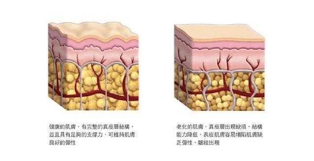 隨著年齡的增長,膠原蛋白會逐漸的流失,從而導致支撐皮膚的膠原纖維和彈力纖維,